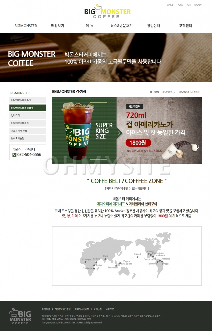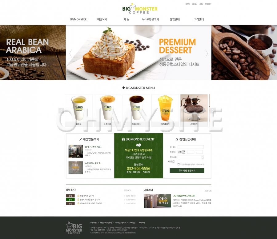 빅몬스터 프렌차이즈 커피전문점 사이트가 구축되었습니다.