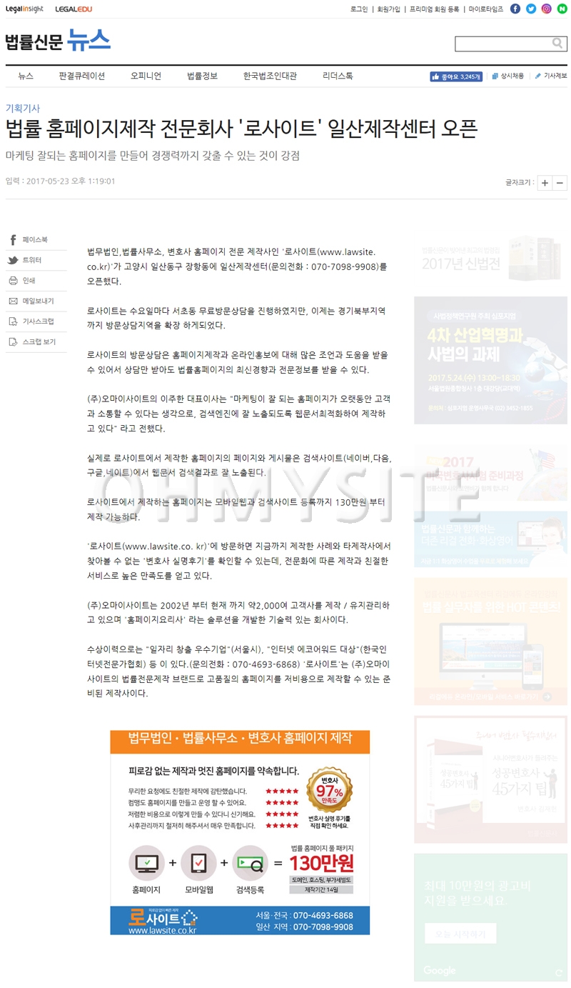 법률신문에 오마이사이트 법률전문제작 브랜드 '로사이트'의 소식이 소개..